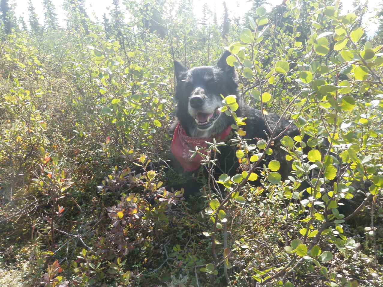 When I'm berry picking is the time when I feel most vulnerable to bears, because I am hunched over in a vulnerable position. It is good to have alert dogs (and bear spray):