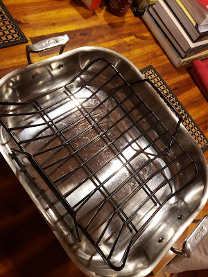 And I scrubbed the pan clean and ready to go back to the bedroom closet. Yes, one gets funny storage habits when one lives in a tiny place. Whenever I get annoyed with it. I look at our heating and property tax bills and feel happy again. I'm thankful, too, that DL was willing to give up his big ol' Real House and cram himself in here with me..